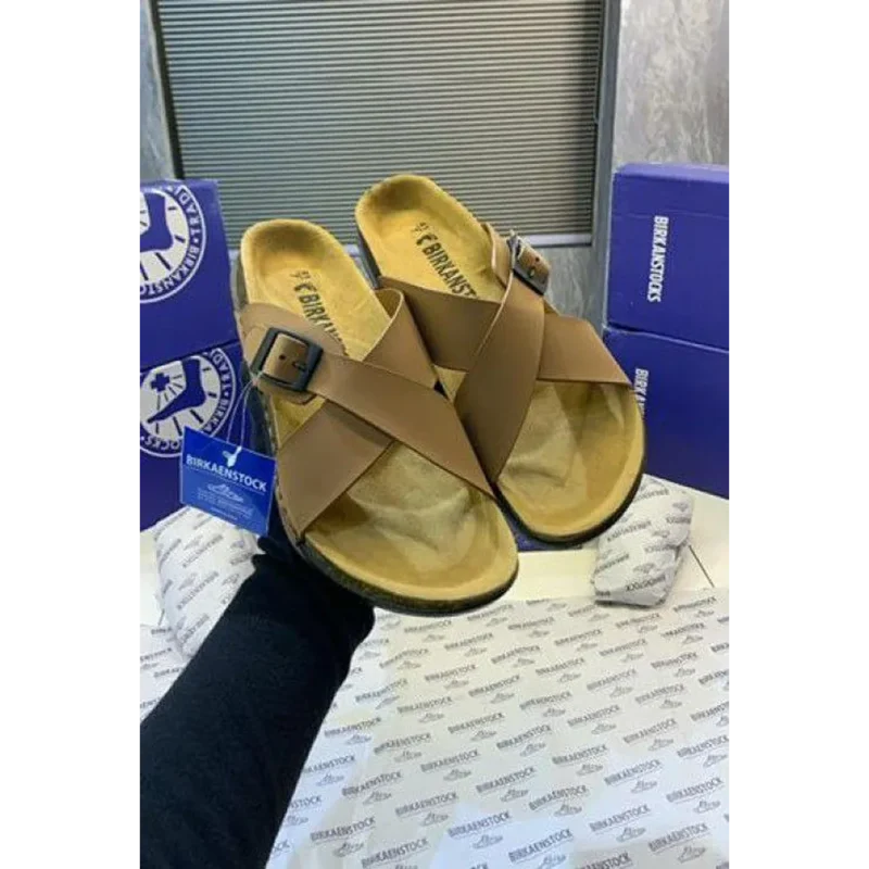 Luxurious Birkenstocks Tan Slide For Men (FF518)