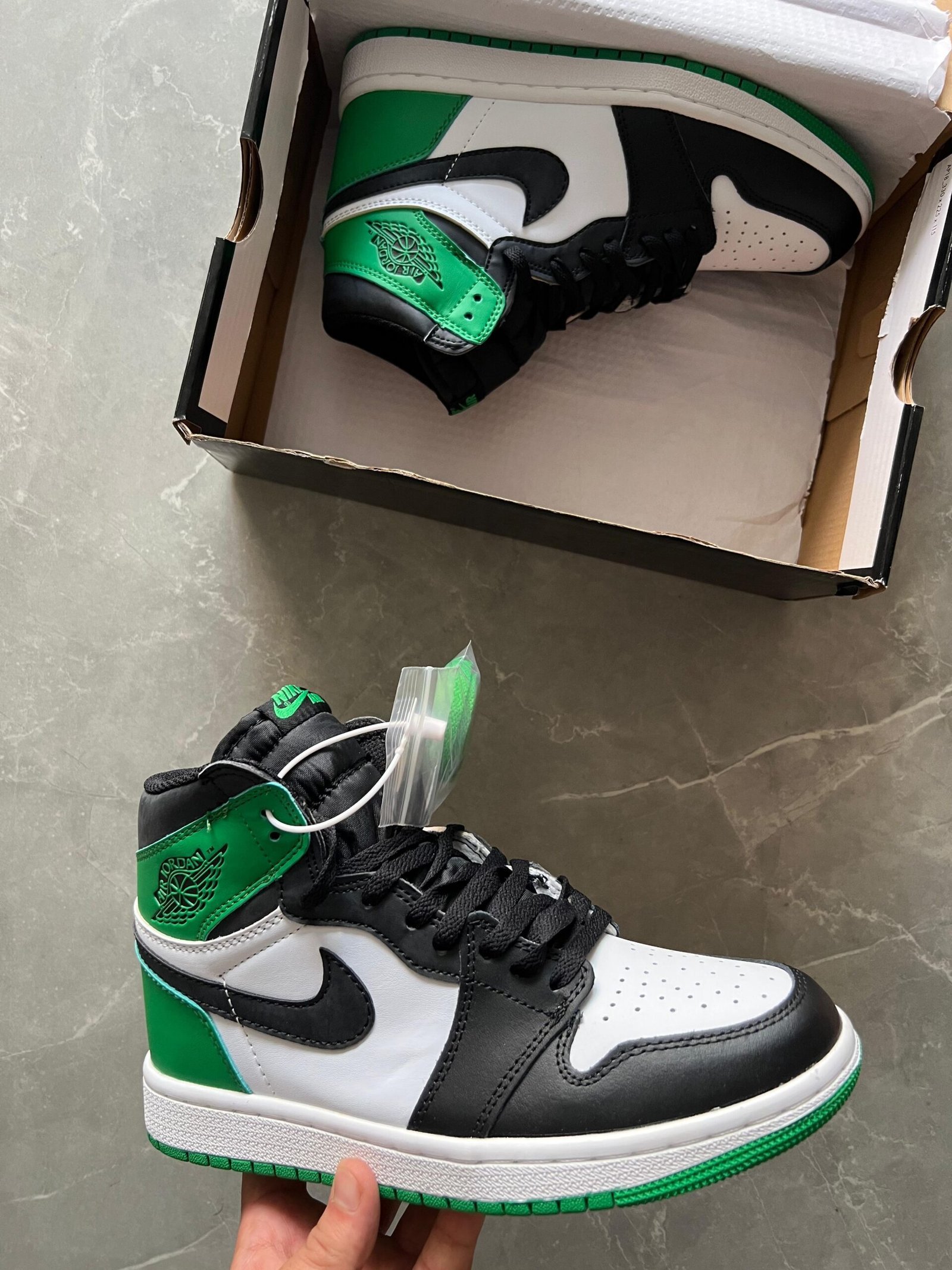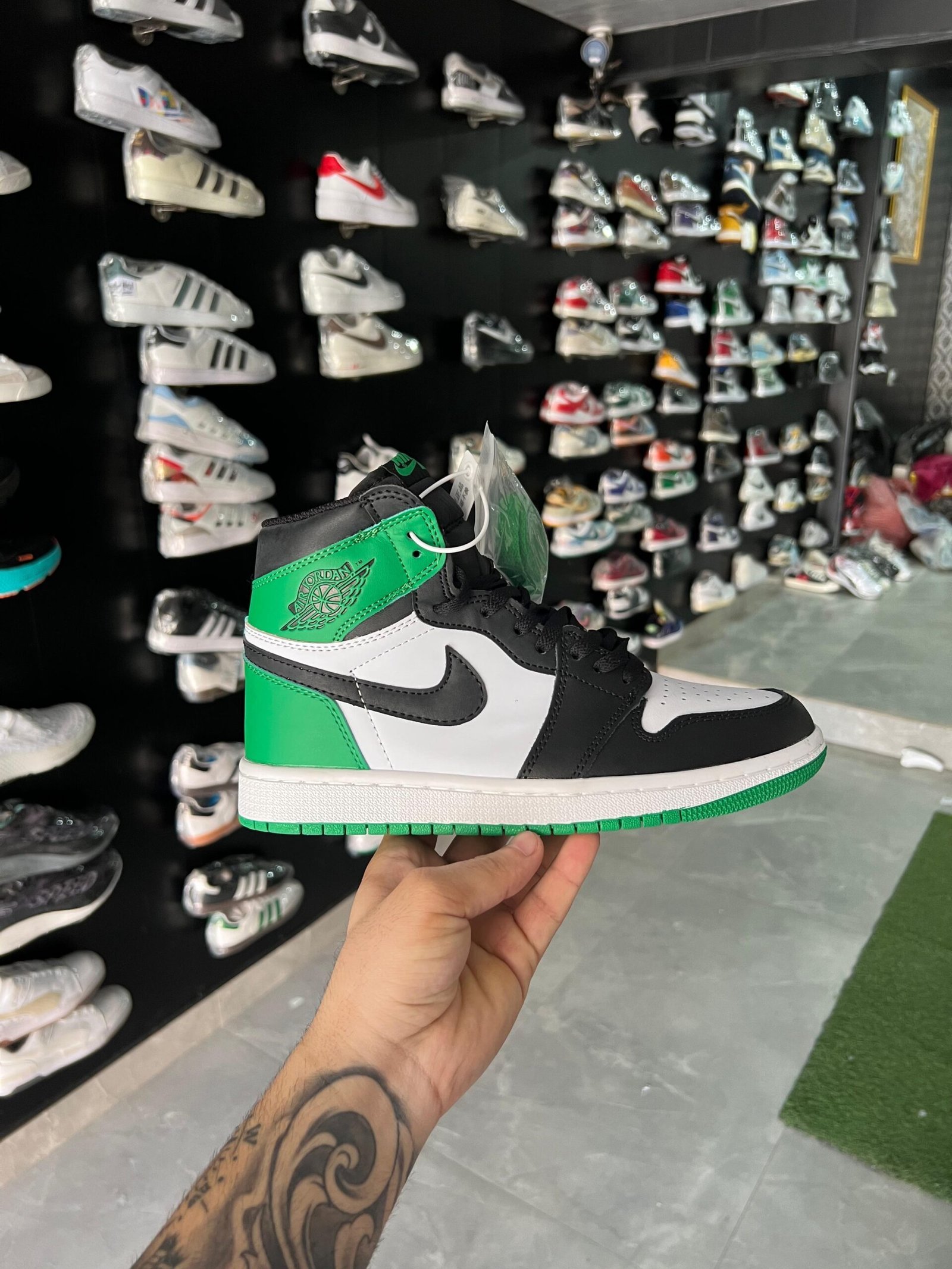Step up your sneaker game with the Nike Air Jordan 1 in a striking black and green colorway. These shoes from our Sneaker First Copy collection offer a perfect blend of style and comfort. Available in sizes 41 to 45, they are designed to enhance your sneaker collection while providing a stylish look.