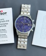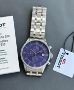 -silver bezel with blue dial