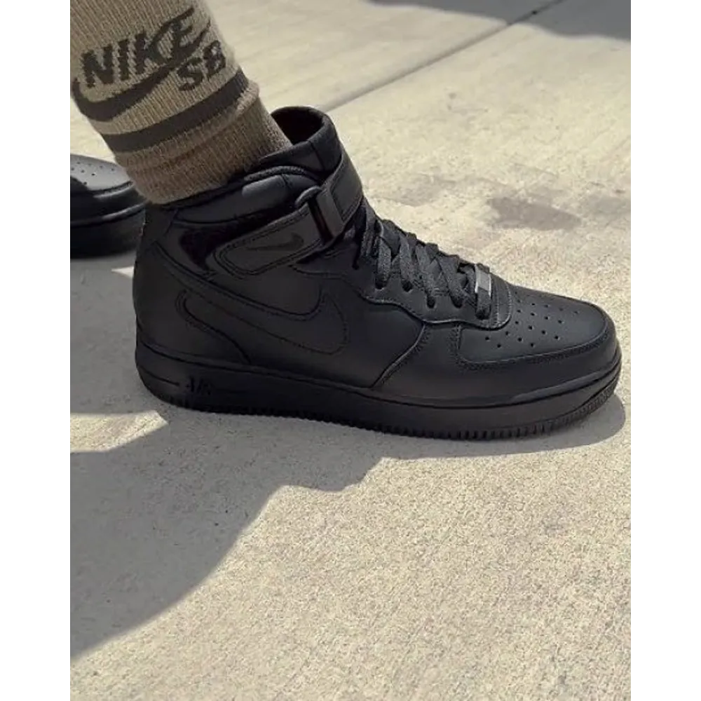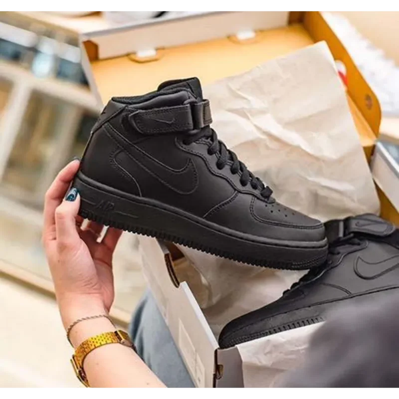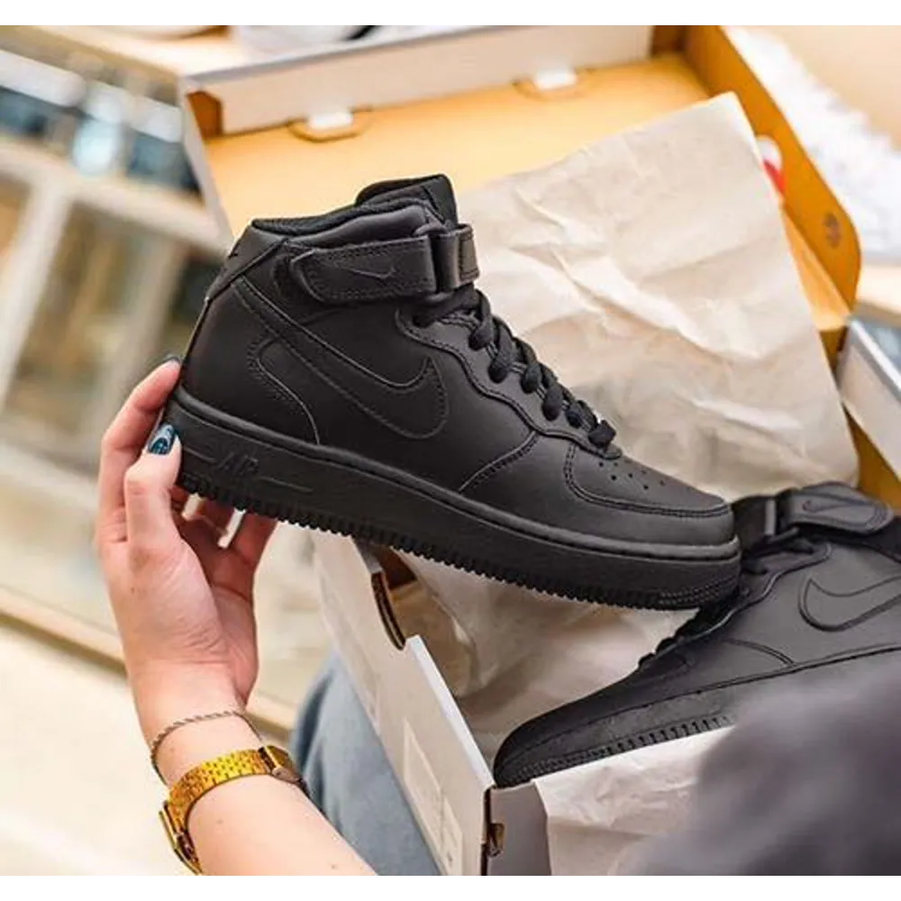 Package Contains: It Has One Pair Of Nike Air Force 1 Full Black Mid Shoes