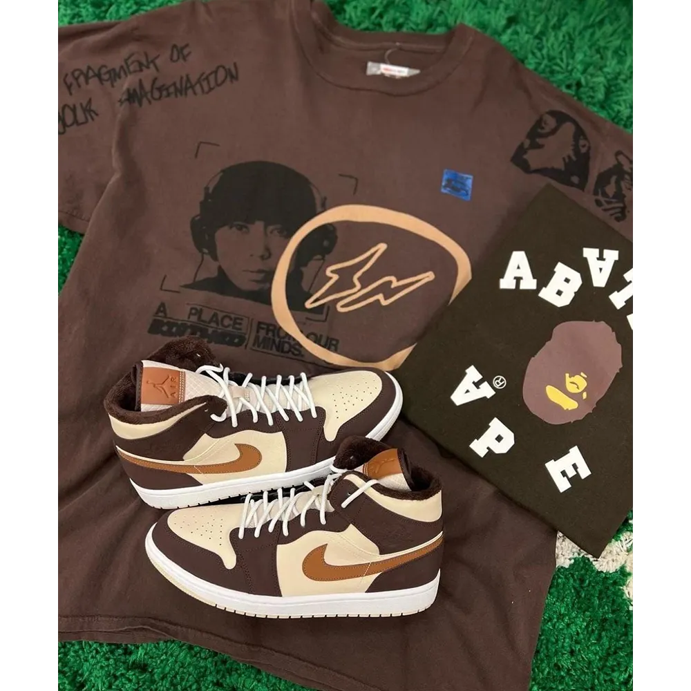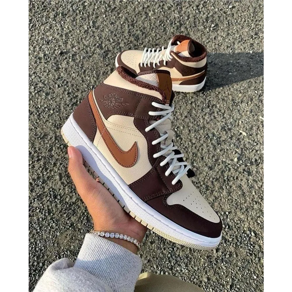 Trendy Nike Jordan 1 Mid Brown Basalt Oatmeal Mocha Shoes